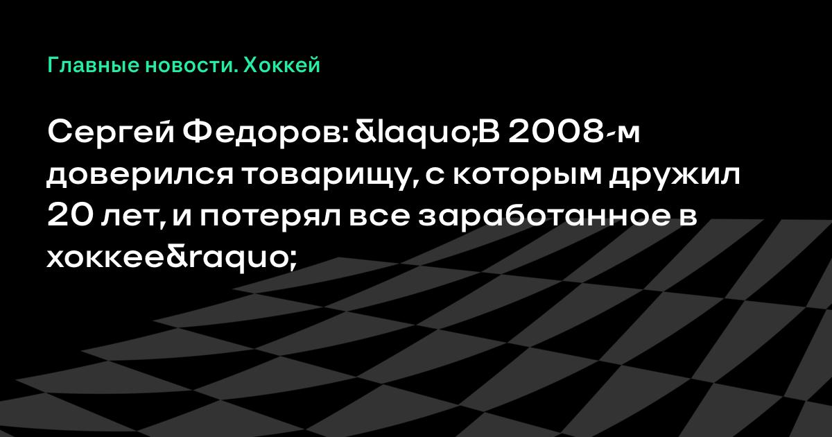 Сергей Федоров: «В 2008-м доверился товарищу, с которым дружил 20 лет, и потерял все заработанное в хоккее»