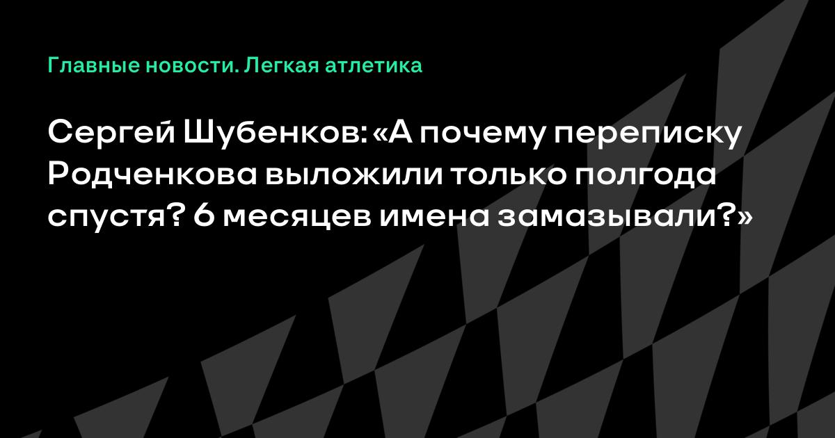Чемпион мира в беге на 110 м с барьерами Сергей Шубенков прокомментировал публикацию переписки экс-главы Московской лаборатории Григория Родченкова, посвященную вопросам сокрытия допинга.