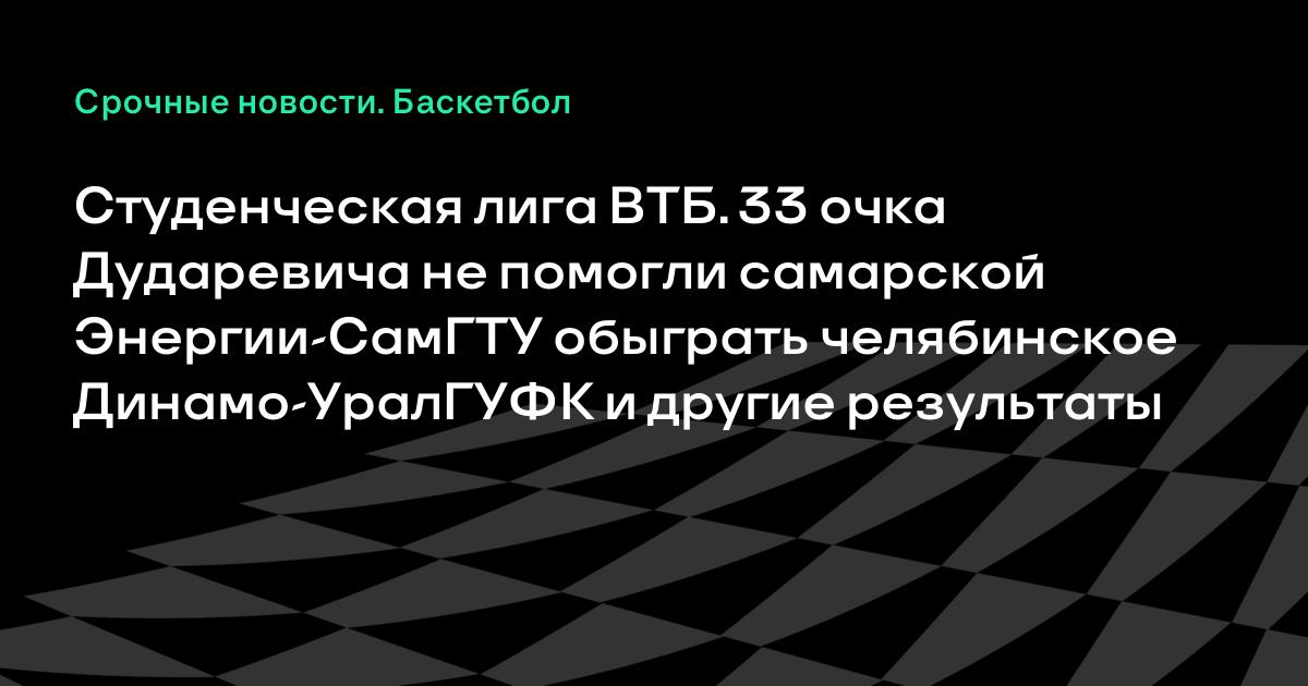 Студенческая лига ВТБ. 33 очка Дударевича не помогли самарской Энергии-СамГТУ обыграть челябинское Динамо-УралГУФК и другие результаты