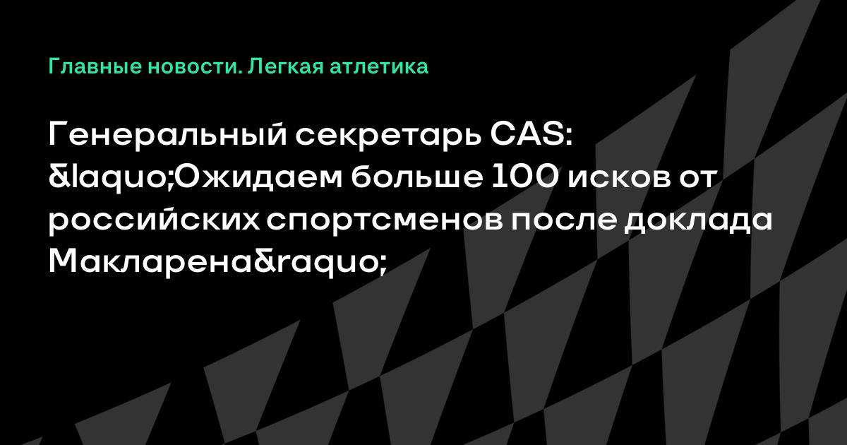 Генеральный секретарь CAS: «Ожидаем больше 100 исков от российских спортсменов после доклада Макларена»