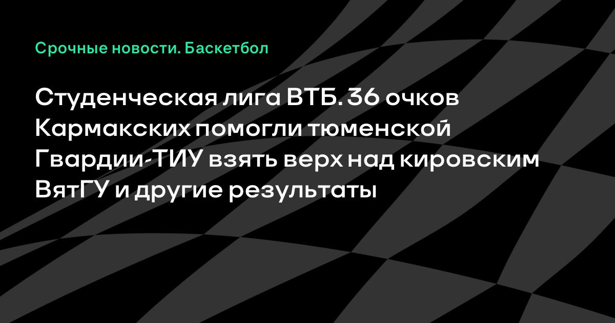Студенческая лига ВТБ. 36 очков Кармакских помогли тюменской Гвардии-ТИУ взять верх над кировским ВятГУ и другие результаты