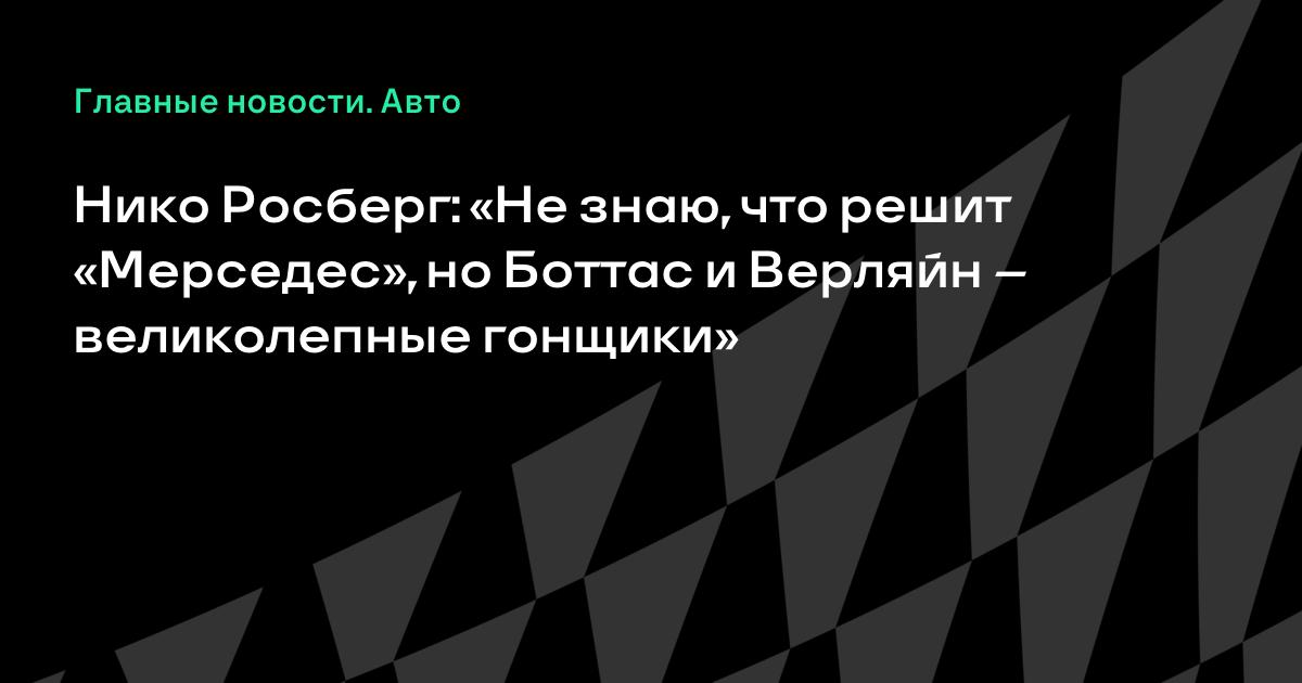 Нико Росберг: «Не знаю, что решит «Мерседес», но Боттас и Верляйн – великолепные гонщики»