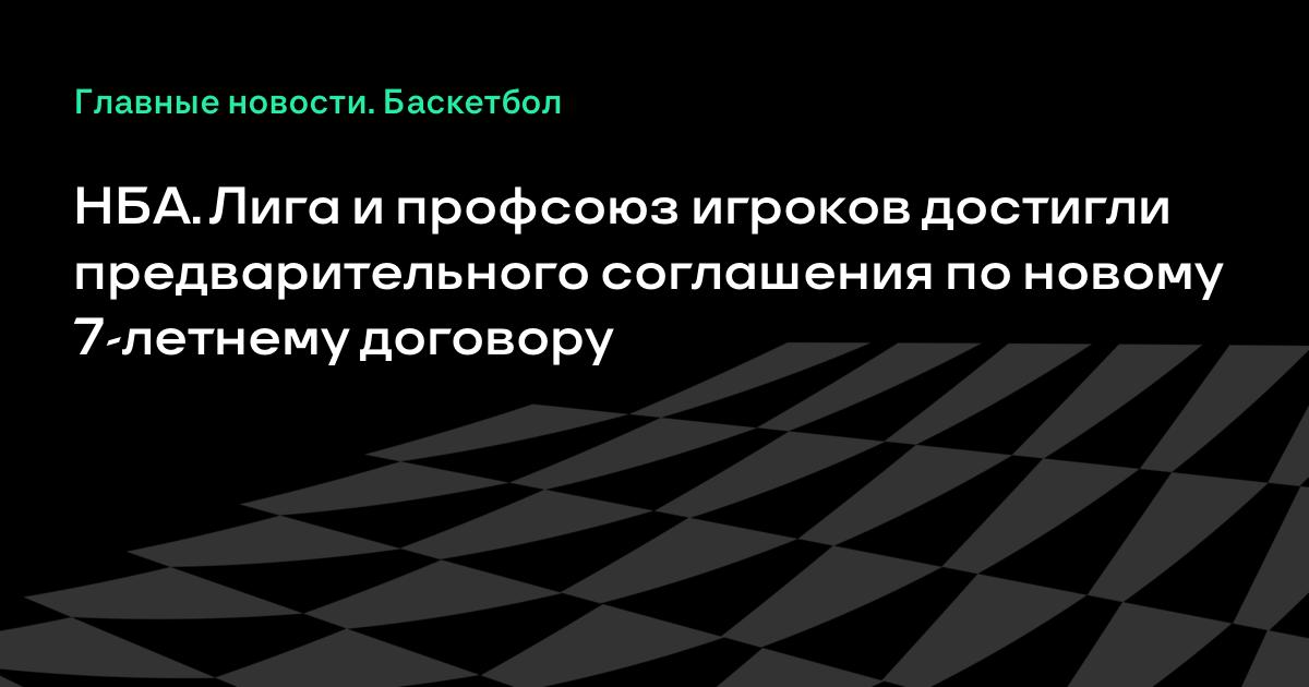 НБА и профсоюз игроков достигли предварительного соглашения по новому коллективному договору, который будет рассчитан на 7 лет с опцией расторжения после 6 сезонов, сообщает ESPN.com. Сделка еще должна быть утверждена владельцами клубов и игроками лиги.