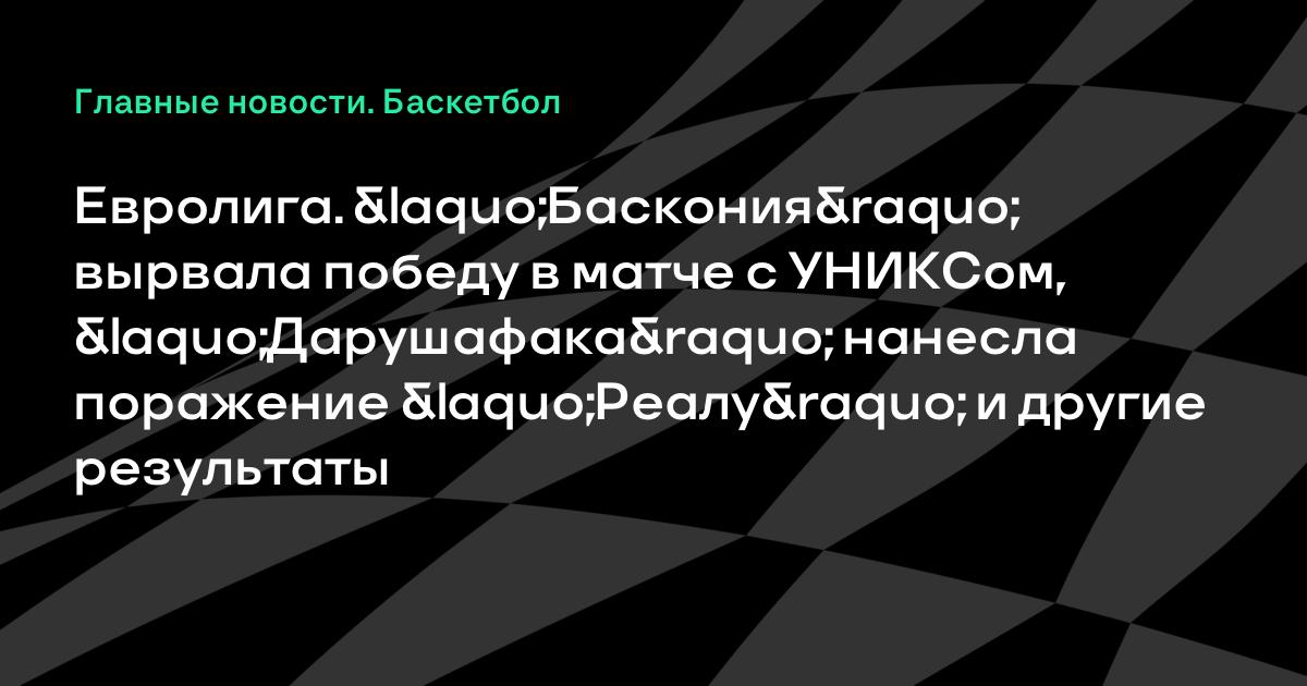 Евролига. «Баскония» вырвала победу в матче с УНИКСом, «Дарушафака» нанесла поражение «Реалу» и другие результаты