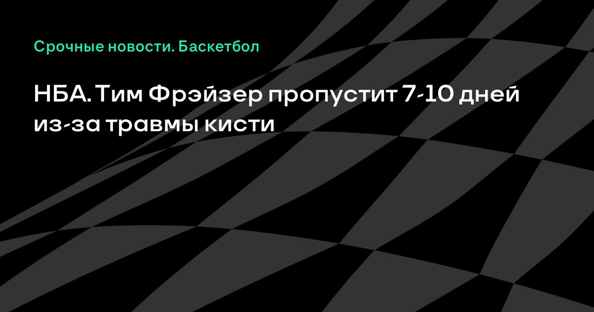 Разыгрывающий «Нового Орлеана» Тим Фрэйзер получил ушиб правой кисти и пропустит от 7 до 10 дней, сообщает The Advocate.