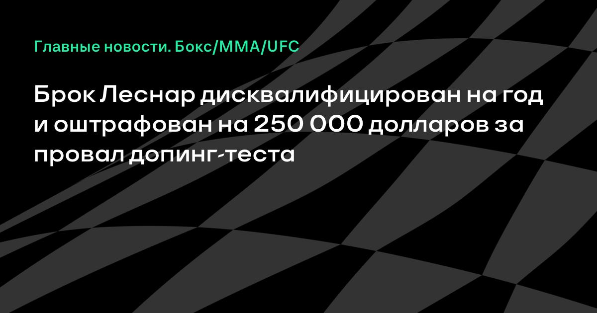 Бывший чемпион UFC Брок Леснар дисквалифицирован Атлетической комиссией штата Невада на год и оштрафован на 250 000 долларов за провал допинг-теста после турнира UFC 200, который прошел летом этого года.