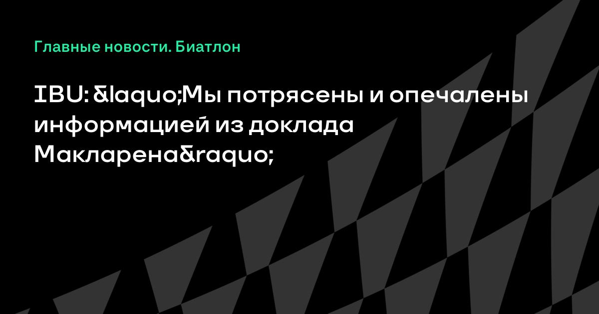 IBU потрясен и глубоко опечален информацией из доклада Макларена. IBU всегда подчеркивал, что чистый спорт, борьба с допингом и защита чистых спортсменов – приоритеты организации», – говорится в сообщении.