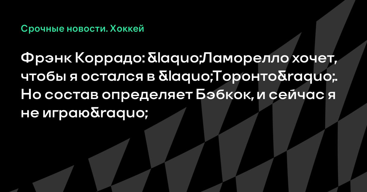 Фрэнк Коррадо: «Ламорелло хочет, чтобы я остался в «Торонто». Но состав определяет Бэбкок, и сейчас я не играю»