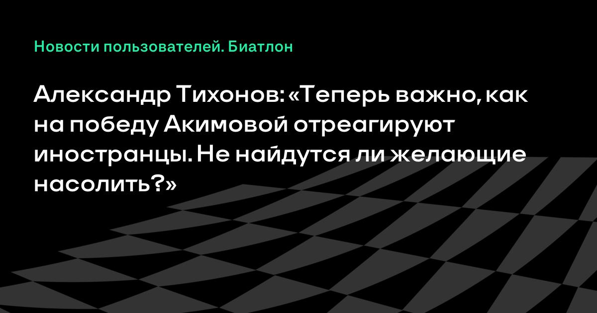 Александр Тихонов: «Теперь важно, как на победу Акимовой отреагируют иностранцы. Не найдутся ли желающие насолить?»