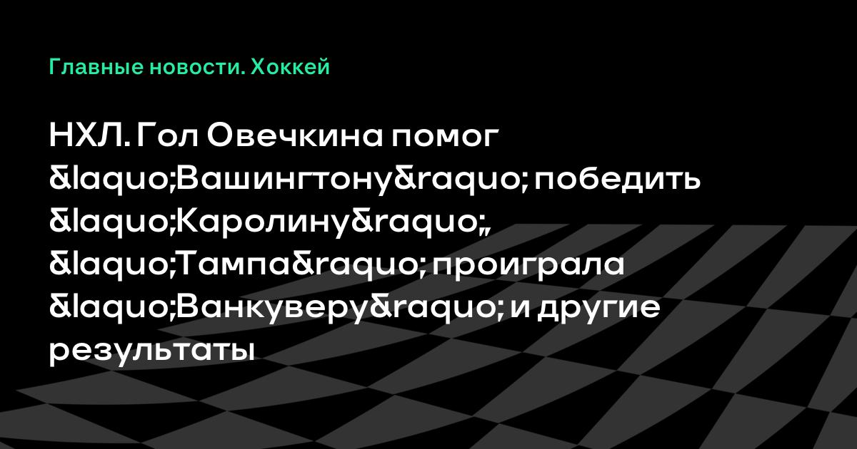 НХЛ. Гол Овечкина помог «Вашингтону» победить «Каролину», «Тампа» проиграла «Ванкуверу» и другие результаты