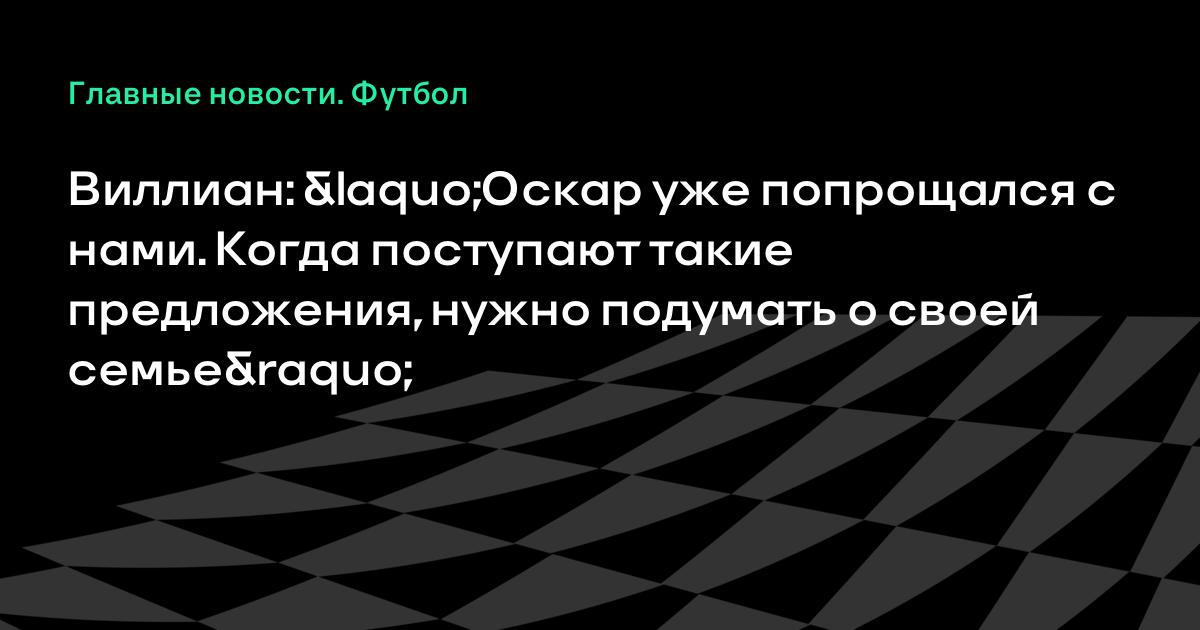 Виллиан: «Оскар уже попрощался с нами. Когда поступают такие предложения, нужно подумать о своей семье»