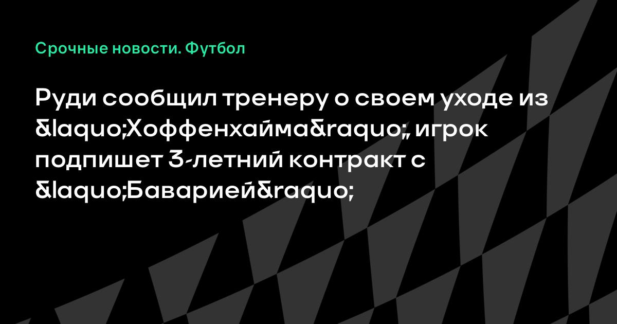 Руди сообщил тренеру о своем уходе из «Хоффенхайма», игрок подпишет 3-летний контракт с «Баварией»