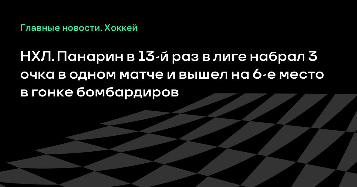 НХЛ. Панарин в 13-й раз в лиге набрал 3 очка в одном матче и вышел на 6-е место в гонке бомбардиров