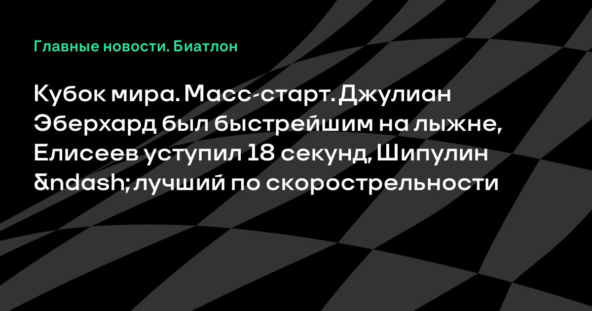 Кубок мира. Масс-старт. Джулиан Эберхард был быстрейшим на лыжне, Елисеев уступил 18 секунд, Шипулин – лучший по скорострельности