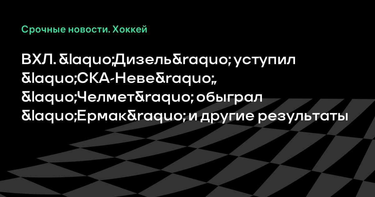 ВХЛ. «Дизель» уступил «СКА-Неве», «Челмет» обыграл «Ермак» и другие результаты