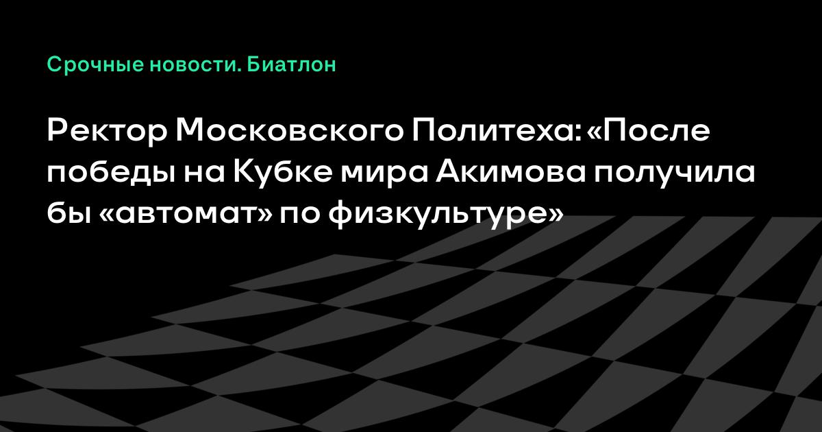 Российская биатлонистка Татьяна Акимова получила бы «автомат» по физкультуре после успешного выступления на этапе Кубка мира в чешском Нове Место, заявил ректор Московского политехнического университета Андрей Николаенко.