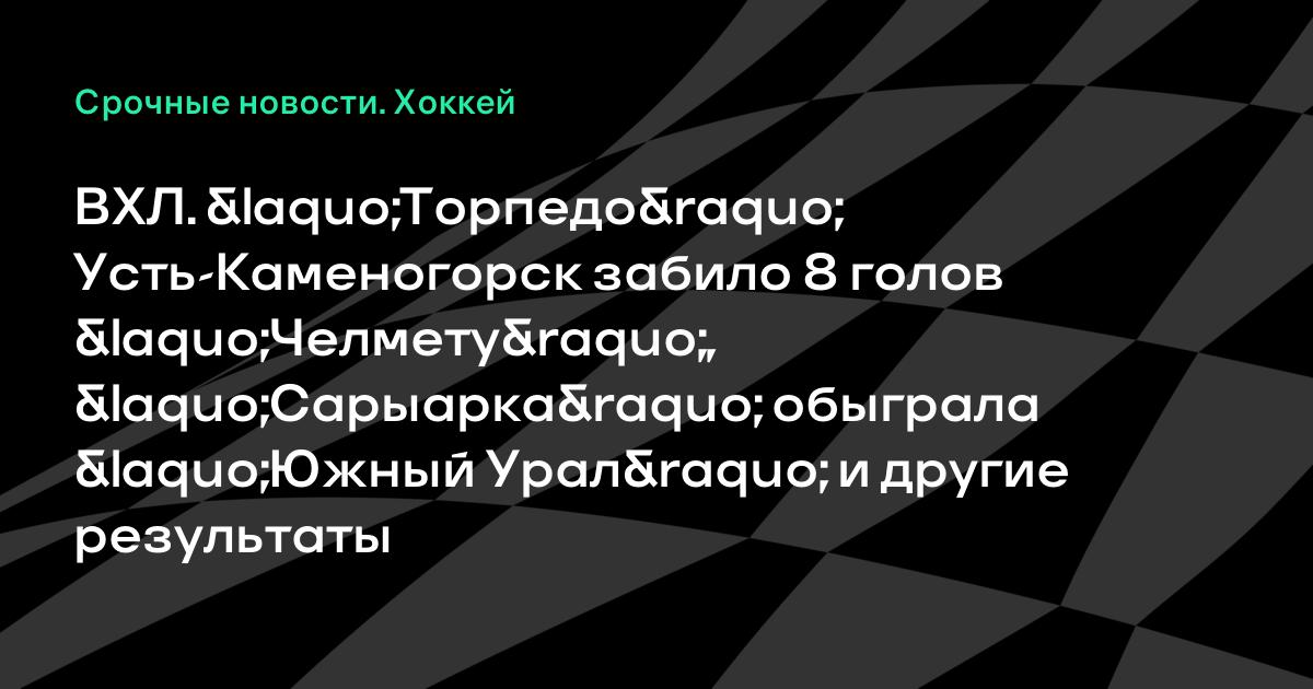 ВХЛ. «Торпедо» Усть-Каменогорск забило 8 голов «Челмету», «Сарыарка» обыграла «Южный Урал» и другие результаты