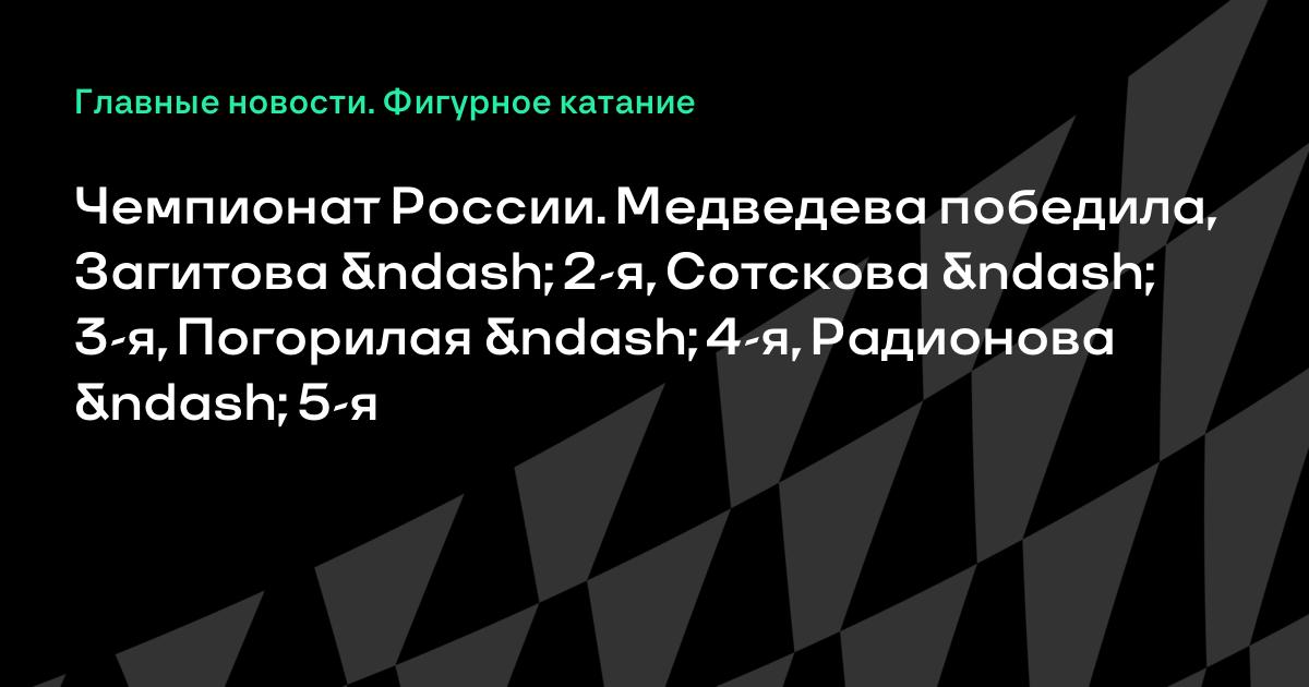 Чемпионат России. Медведева победила, Загитова – 2-я, Сотскова – 3-я, Погорилая – 4-я, Радионова – 5-я