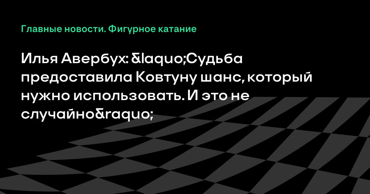 Илья Авербух: «Судьба предоставила Ковтуну шанс, который нужно использовать. И это не случайно»