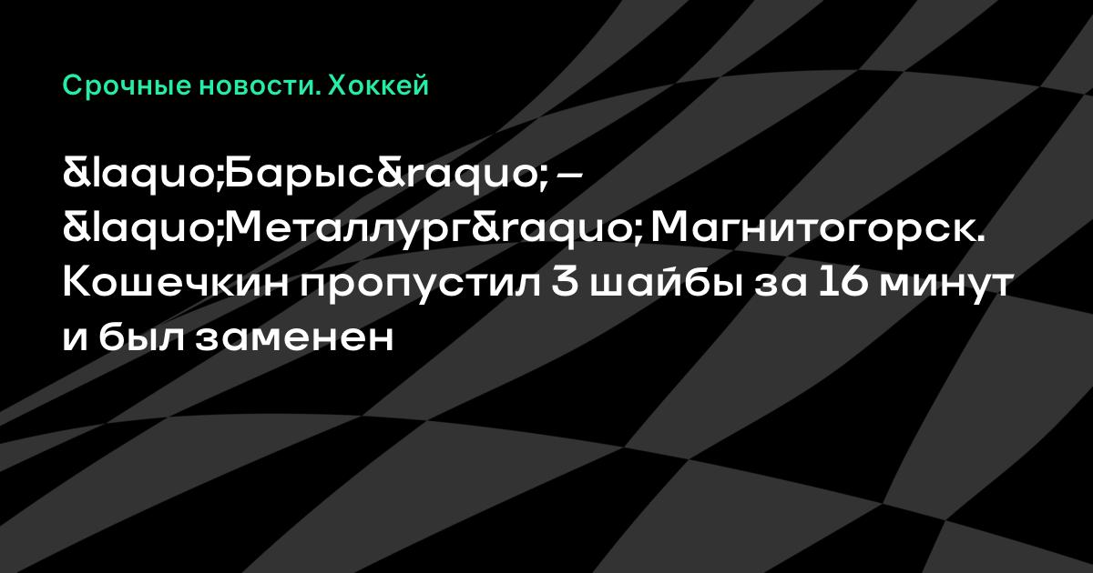 «Барыс» – «Металлург» Магнитогорск. Кошечкин пропустил 3 шайбы за 16 минут и был заменен