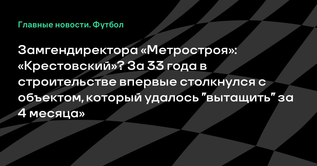 Замгендиректора «Метростроя»: «Крестовский»? За 33 года в строительстве впервые столкнулся с объектом, который удалось “вытащить” за 4 месяца»