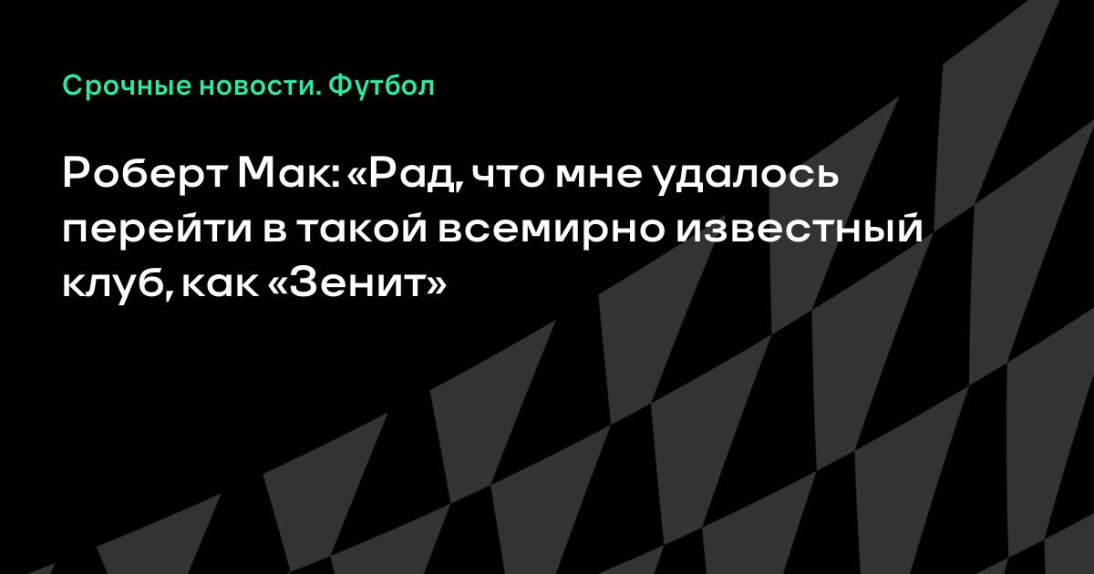 Роберт Мак: «Рад, что мне удалось перейти в такой всемирно известный клуб, как «Зенит»