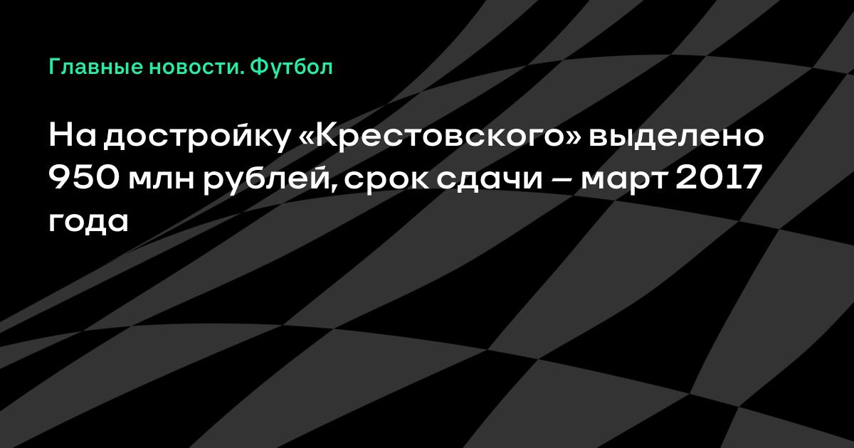 На достройку «Крестовского» выделено 950 млн рублей, срок сдачи – март 2017 года
