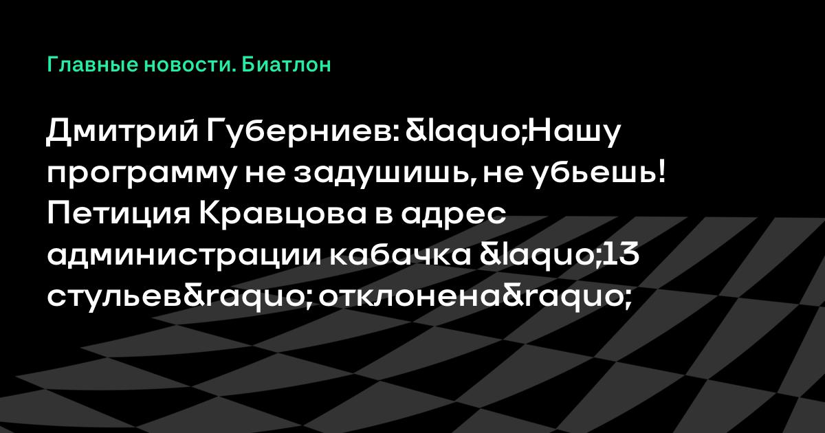 Дмитрий Губерниев: «Нашу программу не задушишь, не убьешь! Петиция Кравцова в адрес администрации кабачка «13 стульев» отклонена»