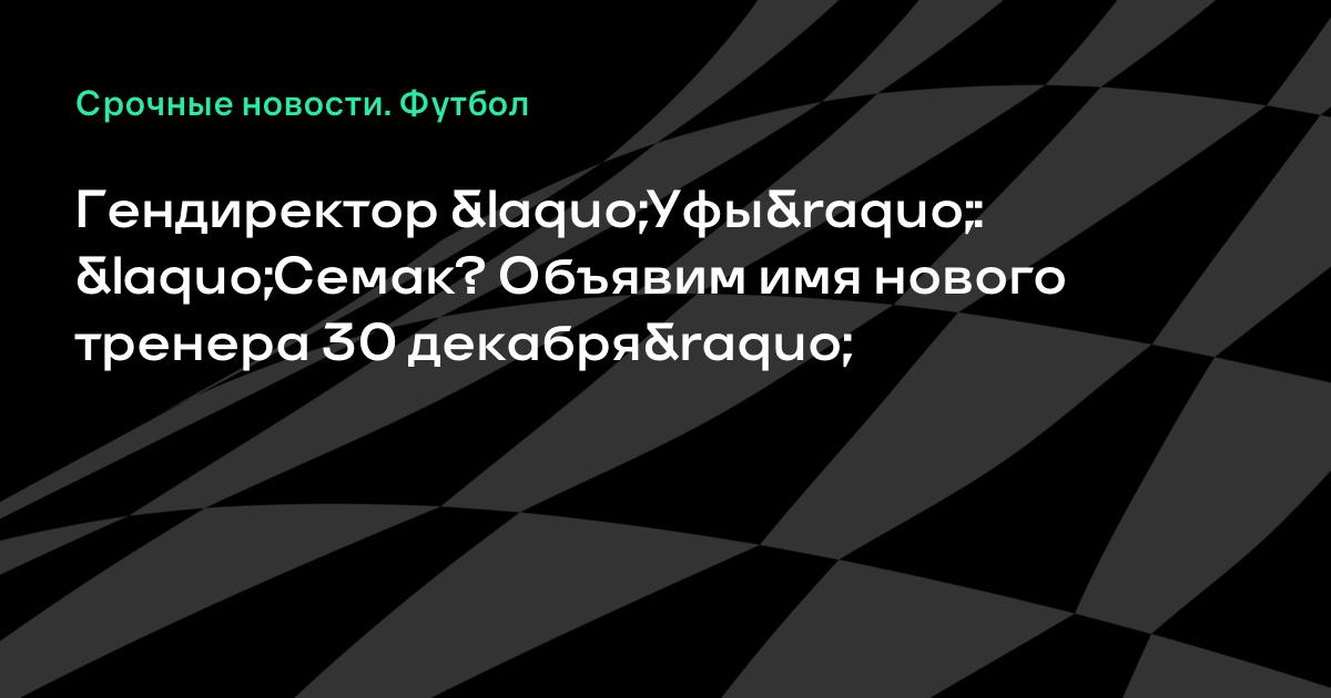 «Сергей Семак может возглавить «Уфу»? Мы объявим главного тренера 30 декабря.