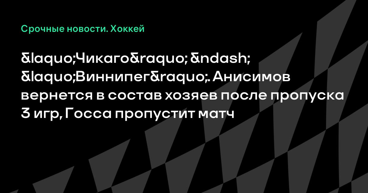 «Чикаго» – «Виннипег». Анисимов вернется в состав хозяев после пропуска 3 игр, Госса пропустит матч