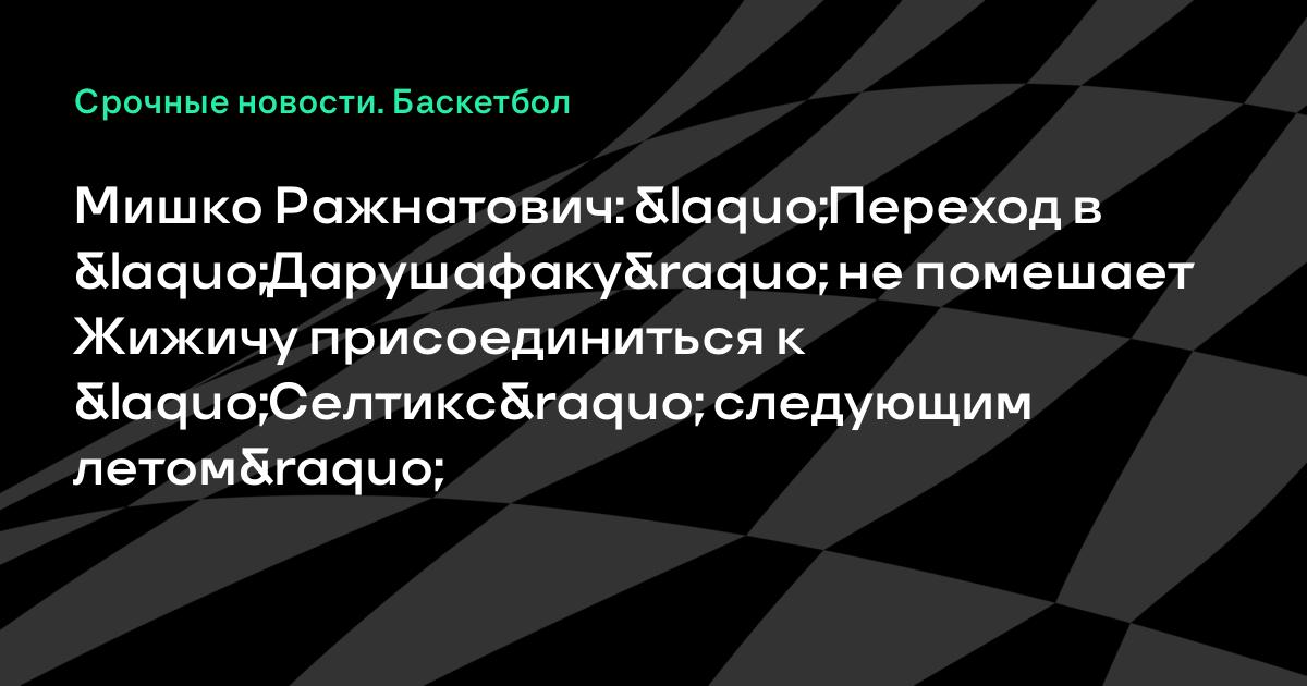 Влиятельный агент Мишко Ражнатович заявил о том, что переход центрового Анте Жижича в «Дарушафаку» не помешает хорвату присоединиться к «Бостону», который выбрал его на драфте-2016.