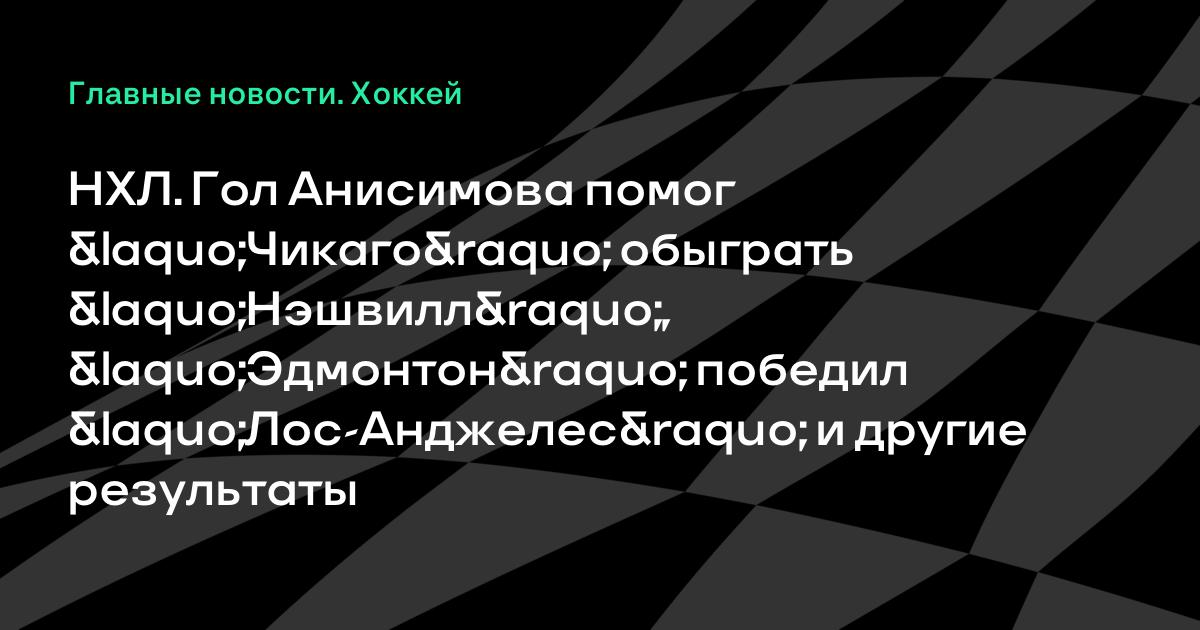 НХЛ. Гол Анисимова помог «Чикаго» обыграть «Нэшвилл», «Эдмонтон» победил «Лос-Анджелес» и другие результаты