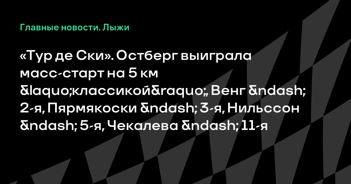 «Тур де Ски». Остберг выиграла масс-старт на 5 км «классикой», Венг – 2-я, Пярмякоски – 3-я, Нильссон – 5-я, Чекалева – 11-я