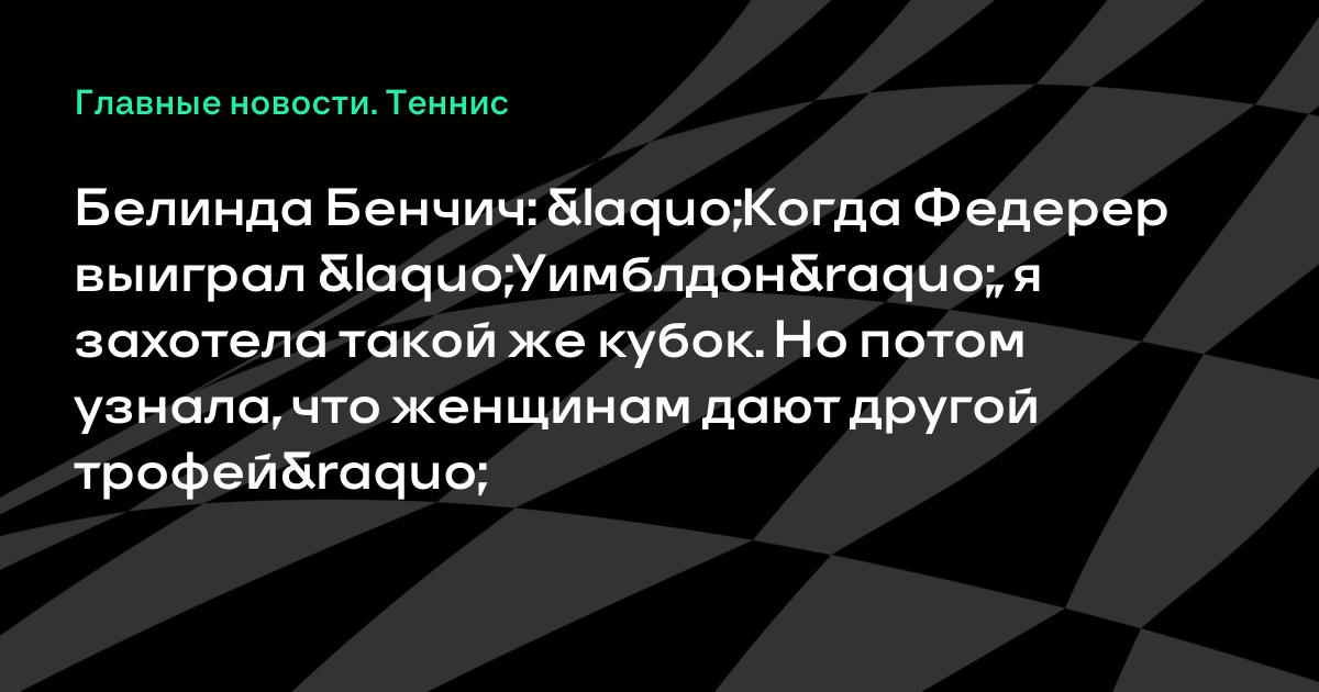 Белинда Бенчич: «Когда Федерер выиграл «Уимблдон», я захотела такой же кубок. Но потом узнала, что женщинам дают другой трофей»