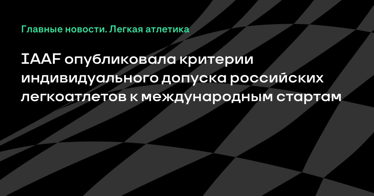 Международная ассоциация легкоатлетических федераций (IAAF) опубликовала критерии получения индивидуального допуска к международным соревнованиям для российских спортсменов в 2017 году.