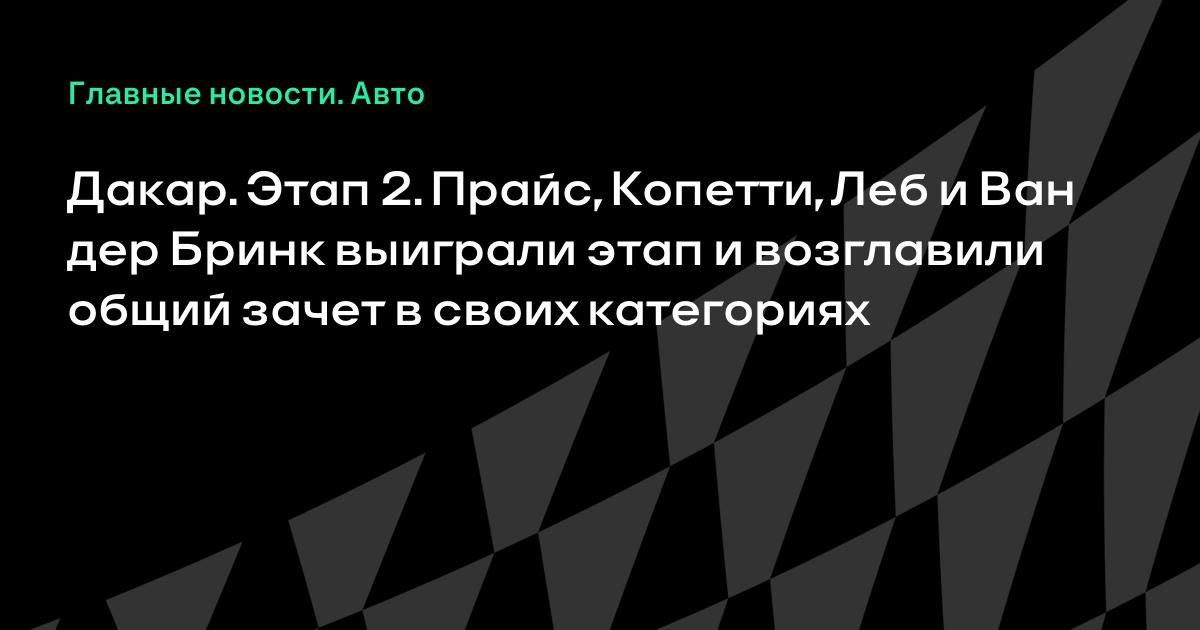 Дакар. Этап 2. Прайс, Копетти, Леб и Ван дер Бринк выиграли этап и возглавили общий зачет в своих категориях