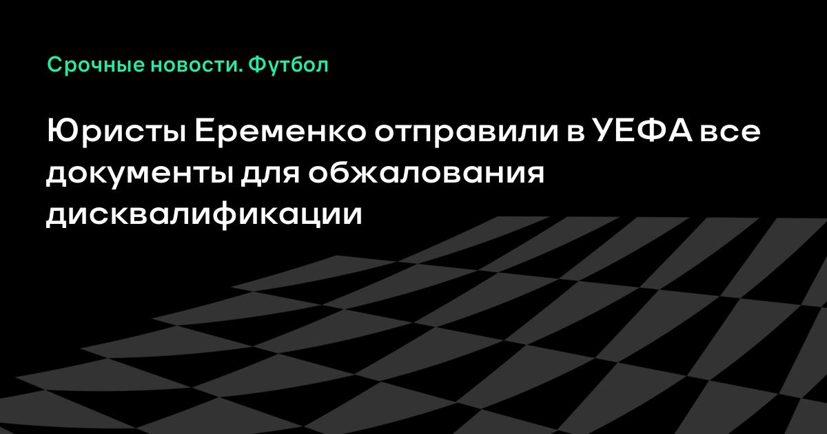 Юристы Еременко отправили в УЕФА все документы для обжалования дисквалификации