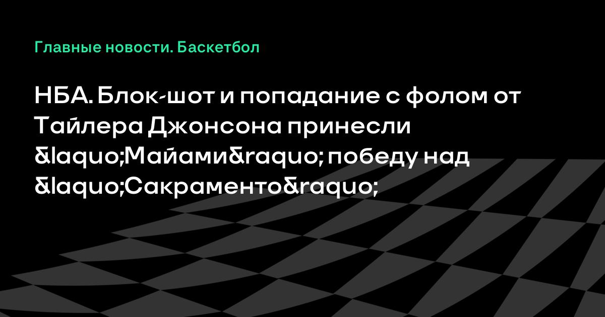 НБА. Блок-шот и попадание с фолом от Тайлера Джонсона принесли «Майами» победу над «Сакраменто»