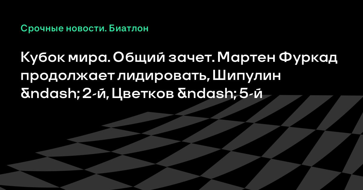Кубок мира. Общий зачет. Мартен Фуркад продолжает лидировать, Шипулин – 2-й, Цветков – 5-й