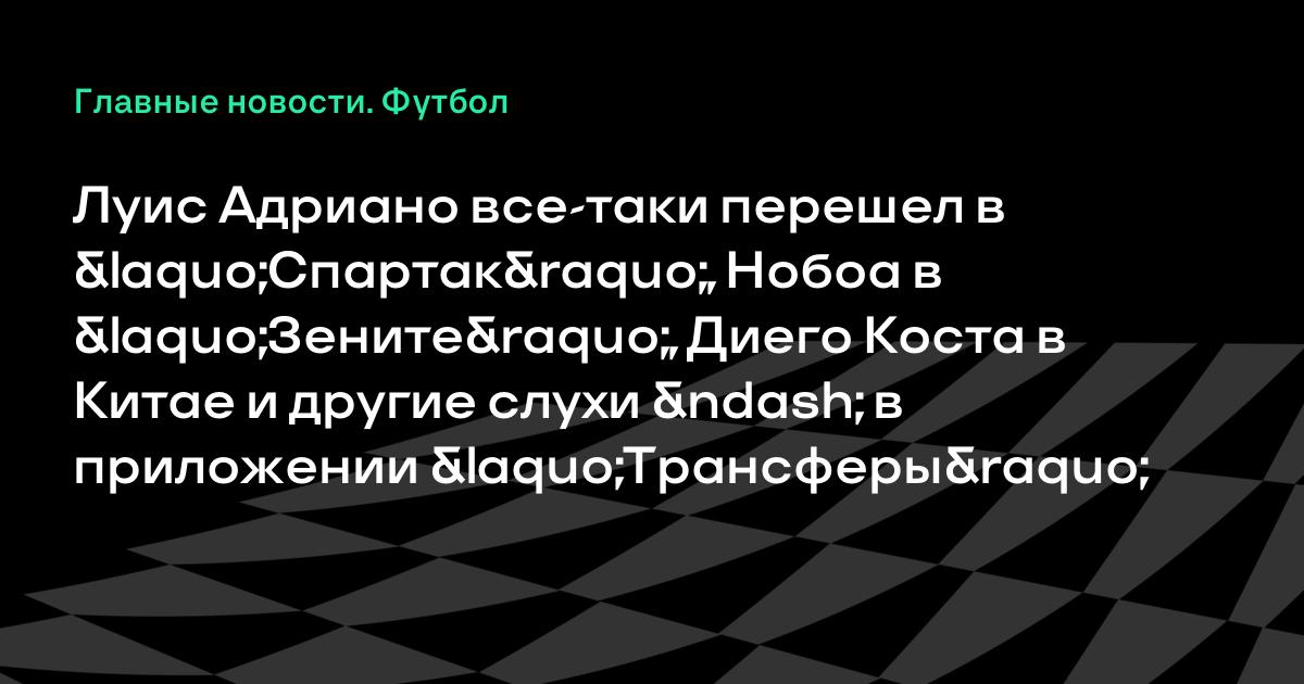 Луис Адриано все-таки перешел в «Спартак», Нобоа в «Зените», Диего Коста в Китае и другие слухи – в приложении «Трансферы»