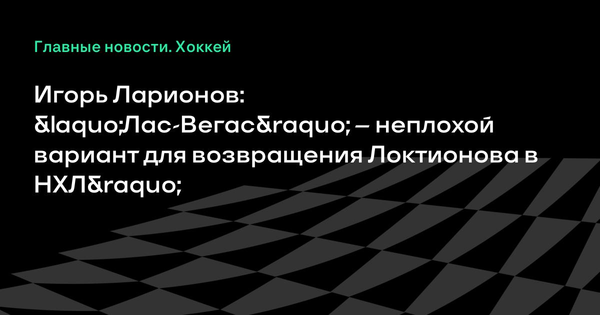 Игорь Ларионов: «Лас-Вегас» – неплохой вариант для возвращения Локтионова в НХЛ»