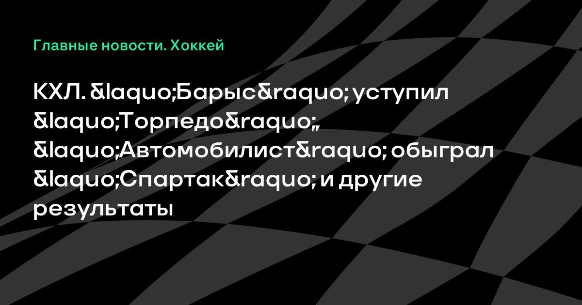 КХЛ. «Барыс» уступил «Торпедо», «Автомобилист» обыграл «Спартак» и другие результаты