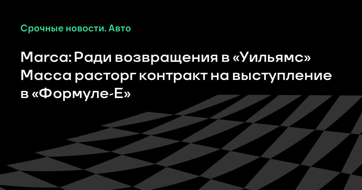 Как сообщается, Масса, который ранее объявил о завершении карьеры в «Формуле-1», уже подписал соглашение на выступление в «Формуле-Е», но потом принял предложение «Уильямса» вернуться.