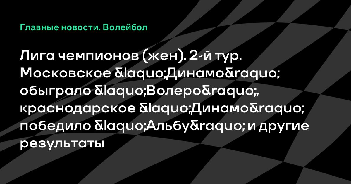Лига чемпионов (жен). 2-й тур. Московское «Динамо» обыграло «Волеро», краснодарское «Динамо» победило «Альбу» и другие результаты