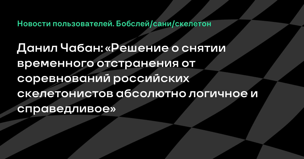 Данил Чабан: «Решение о снятии временного отстранения от соревнований российских скелетонистов абсолютно логичное и справедливое»