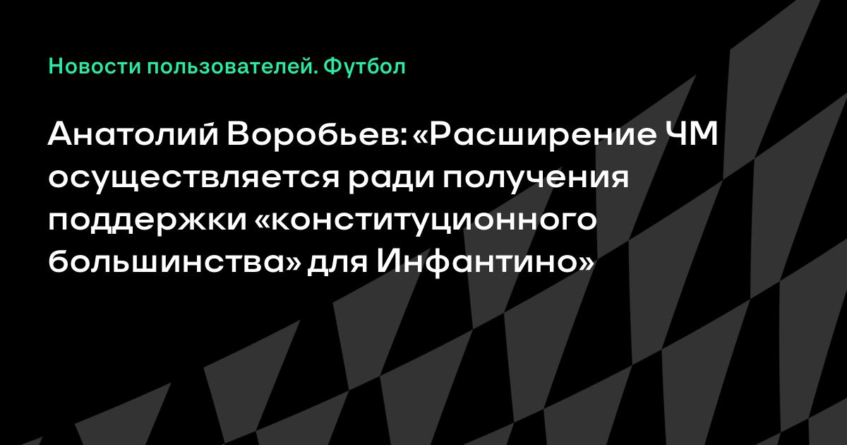 Анатолий Воробьев: «Расширение ЧМ осуществляется ради получения поддержки «конституционного большинства» для Инфантино»