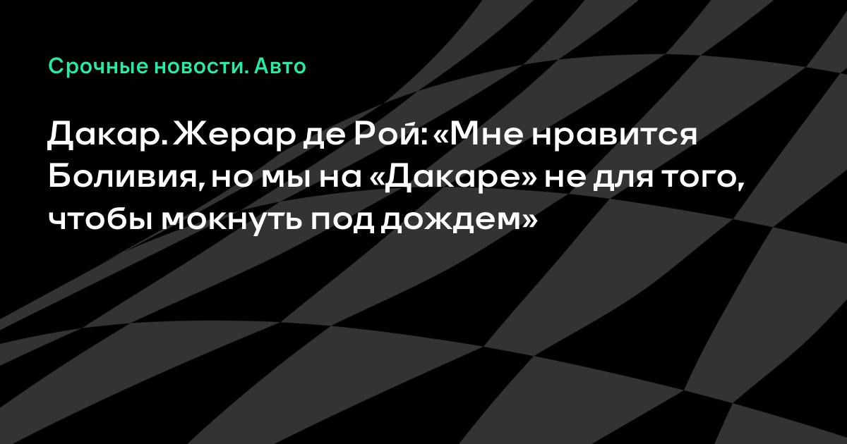 Мы приезжаем на «Дакар» не для того, чтобы целыми днями мокнуть под бушующим дождем и обнаруживать, что бивуаки и спецучастки полностью затоплены. Боливия – красивая страна, мне нравятся ее пейзажи, а также люди, их теплое отношение к участникам, ко всем нам. Но если в следующем году организаторы снова проложат маршрут «Дакара» по Боливии, не знаю, какое будущее их ждет», – цитирует де Роя Motorsport.