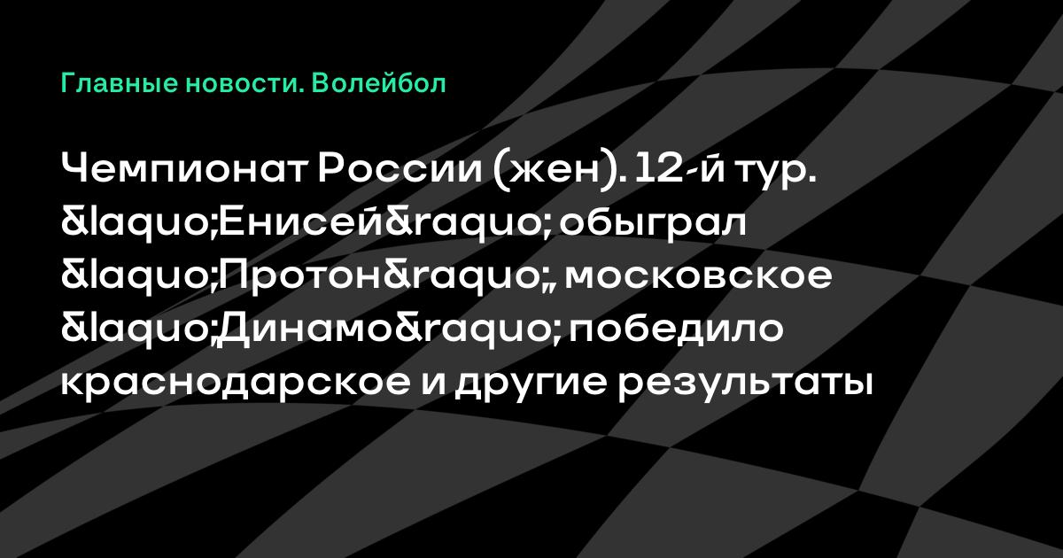 Сегодня завершился 12-й тур женского чемпионата России по волейболу. «Енисей» обыграл «Протон», московское «Динамо» победило краснодарское.