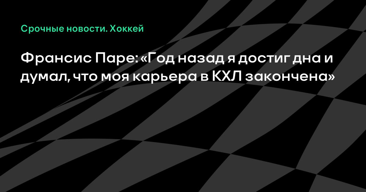 Франсис Паре: «Год назад я достиг дна и думал, что моя карьера в КХЛ закончена»