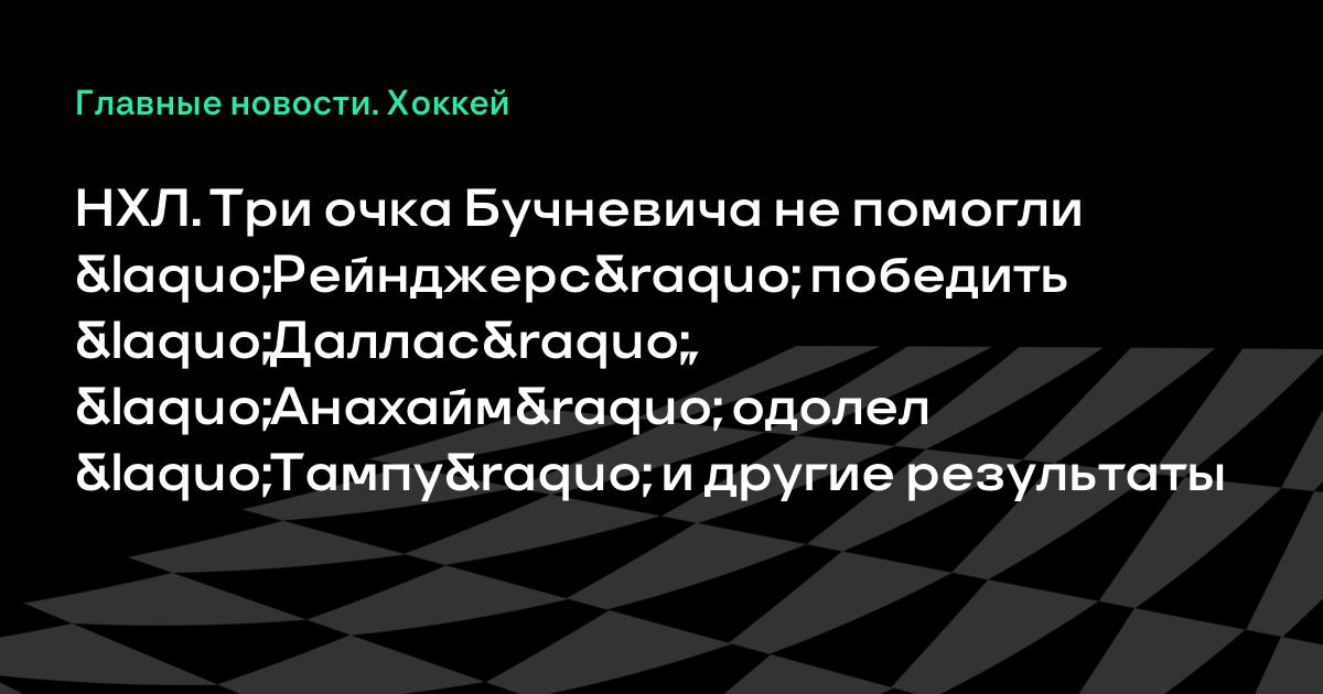 НХЛ. Три очка Бучневича не помогли «Рейнджерс» победить «Даллас», «Анахайм» одолел «Тампу» и другие результаты